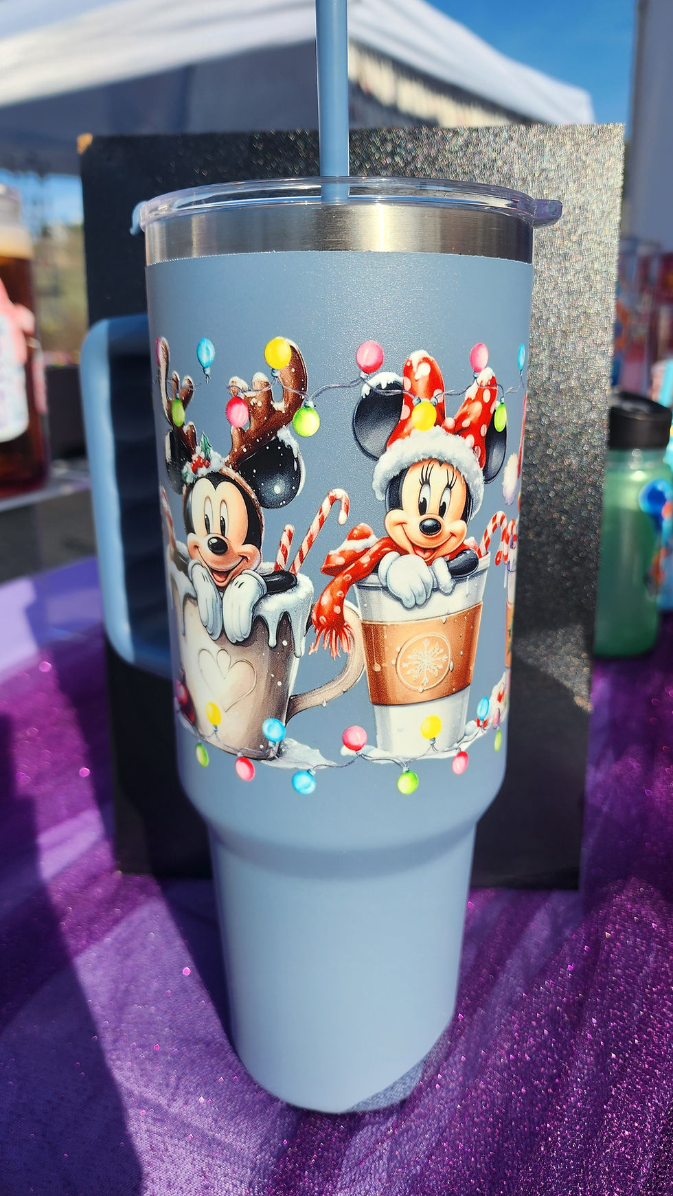 To all different sizes of our snowglobe tumblers, you can add glitter, lava, Beach Illusion, mica, and flakes. The different colors of flakes are gold, rose gold, blue, purple, or red. We also have stainless steel tumblers of all sizes.…